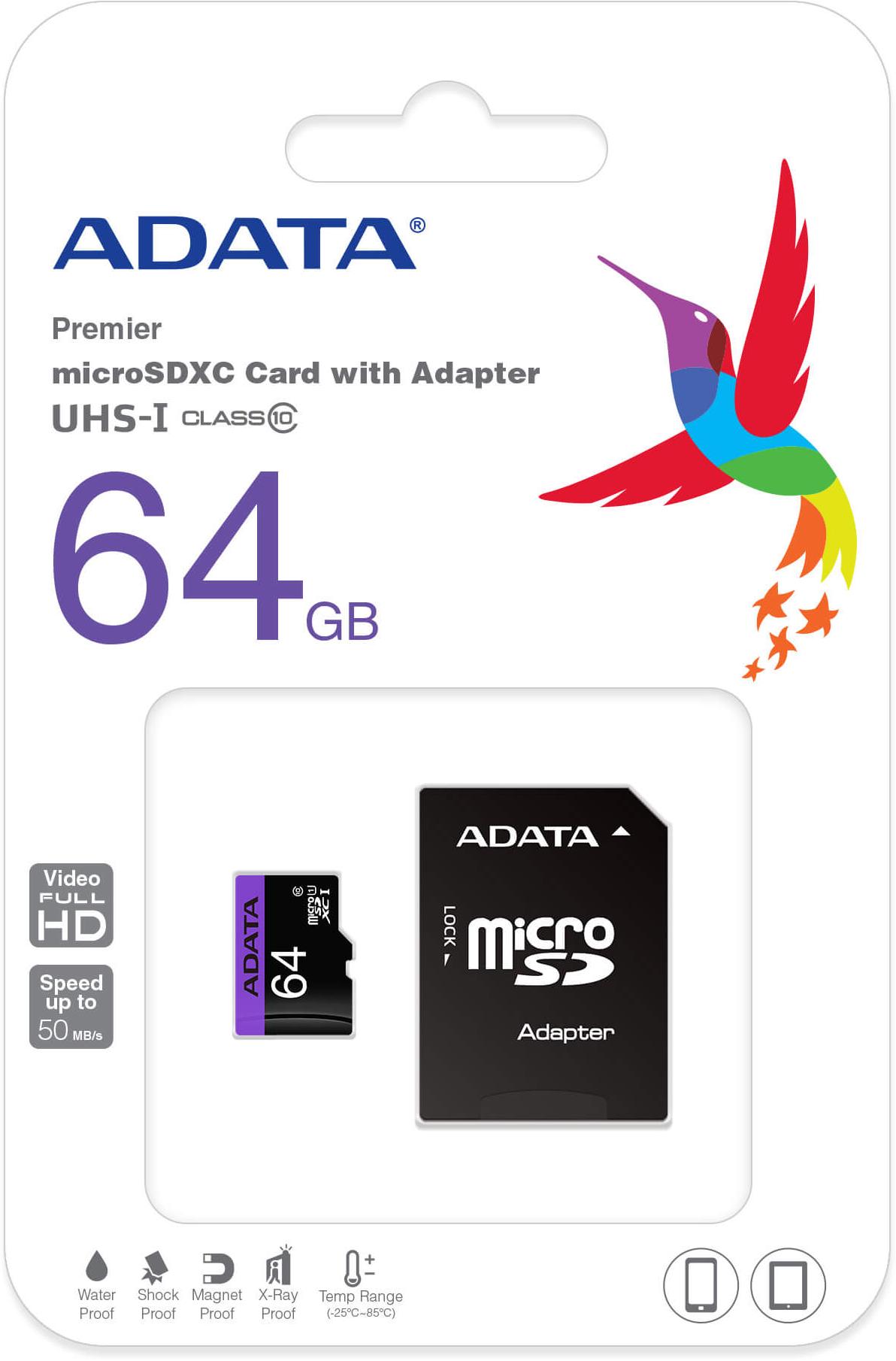 Premier microSDHC/SDXC UHS-I Class 10 U1 memory cards have higher capacity, but without a higher price, and provide consumers with the faster read speeds of UHS-I specification at the price of a Class 10 card. Sequential reads are up to 50 MB/second, and write speeds reach the UHS-I speed class 1 specification. They are remarkably suitable for users who enjoy high definition photography and video recording. Running multiple applications simultaneously causes no loss in read/write speed.