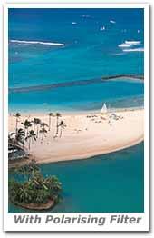 topLight rays which are reflected by any surface become polarised and polarising filters are used to select which light rays enter your camara lens. PL (Linear Polarising) and PL-CIR (Circular Polarising) filters have the same effect, but it is important that you choose the correct version for your camera. They allow you to remove unwanted reflections from non-metallic surfaces such as water, glass etc. They also enable colors to become more saturated and appear clearer, with better contrast. This effect is often used to increase the contrast and saturation in blue skies and white clouds. KENKO's polarising filters do not affect the overall color balance of a shot.