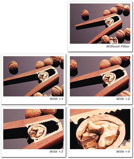Have you ever wished that your lens could focus closer than it does? Imagine that you could put a magnifying glass in front of your camera's lens. Close-up lenses work in this fashion and are the simplest and least expensive method of close-up photography. They are available in different "powers" (diopters). A +1 close-up lens will allow you to focus your lens somewhat closer than it already does. A +2 close-up lens will allow you to focus closer than the +1. A +4 lens will allow you to focus even closer than a +2, and so on. These lenses can be used individually or in any combination to achieve ultra-close focus. The maximum magnification achieved with these attachments will depend on the focal length of your lens as well as the actual close focusing capability of that particular lens. Multicoated to minimize reflection at the filter surfaces which reduces flare and ghosting.