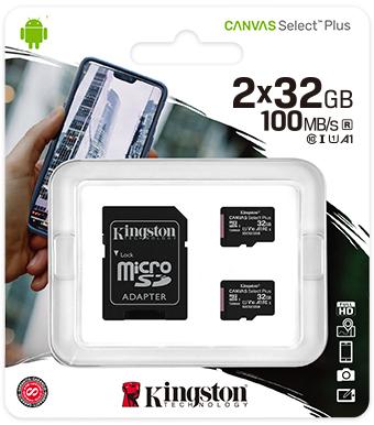 Kingston Canvas Select Plus 32GB UHS-I microSDHC Dual Pack Memory Card with SD Adapter