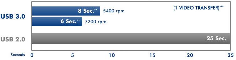 With the Rugged Mini, you've got the speed of USB 3.0, and full backward compatibility with USB 2.0*, meaning that you can use it on almost any computer. You can transfer a 700 MB video file in less than 7 seconds with USB 3.0, compared to 25 seconds with USB 2.0**.